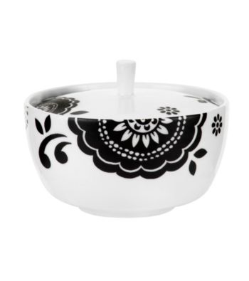 Dinnerware Bowls. Web exclusive! Use this covered sugar bowl as part of a sophisticated tea or coffee service. Or use it everyday to make your hot beverages a little sweeter. The striking black and white floral of Christina is a modern interpretation of classic design and will lend a beautiful sophistication and simplicity to your table. This pattern is one of many in Spode s new bone china collection. Introduced in 2011, the new bone china collection was inspired by vibrant and artistic Spode vintage designs. Bone china, perfected by Josiah Spode I in 1779, is renowned ... Read more